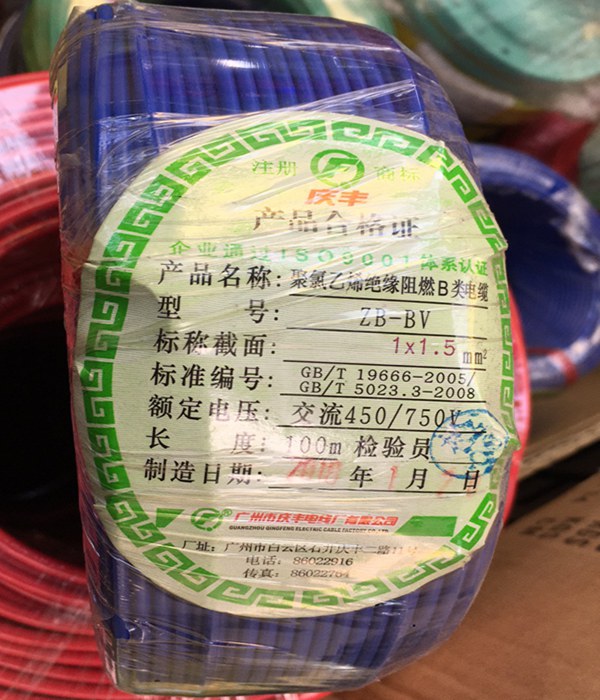 廣州慶豐電纜ZB-BVV阻燃B級(jí)家裝電線